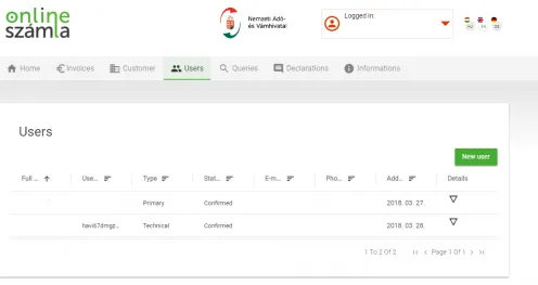 To start the supply of data, you will need to create a so-called technical user (a virtual user for successful data supply to a computer-computer interface) and you will have to apply for a signature key and a replacement key relating to the technical user. After log-in, new menu points will appear and you will have to choose the users option and click the green “new user” button on the right.