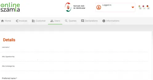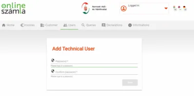 5. Log-in after successful registration: https://onlineszamla-test.nav.gov.hu/login. You can log in after entering your username and password.