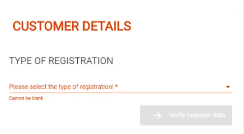 3. Selecting the type of registration, which can be a business organization or private entrepreneur. After choosing the relevant option, you have to enter the first 8 digits of your tax number. For private entrepreneurs, the tax ID also needs to be provided.