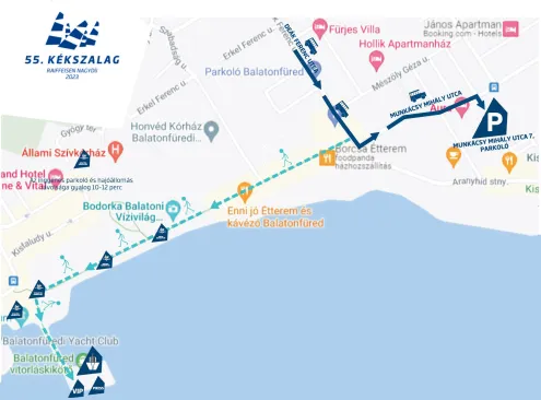 8:00-kor indul a Balaton Katamarán Balatonfüred kikötőjéből. Kérjük, az érkezési időbe számolja bele a rövid regisztrációt is, a nézőhajónak a Kékszalag mezőnye előtt el ki kell futnia a kikötőből!